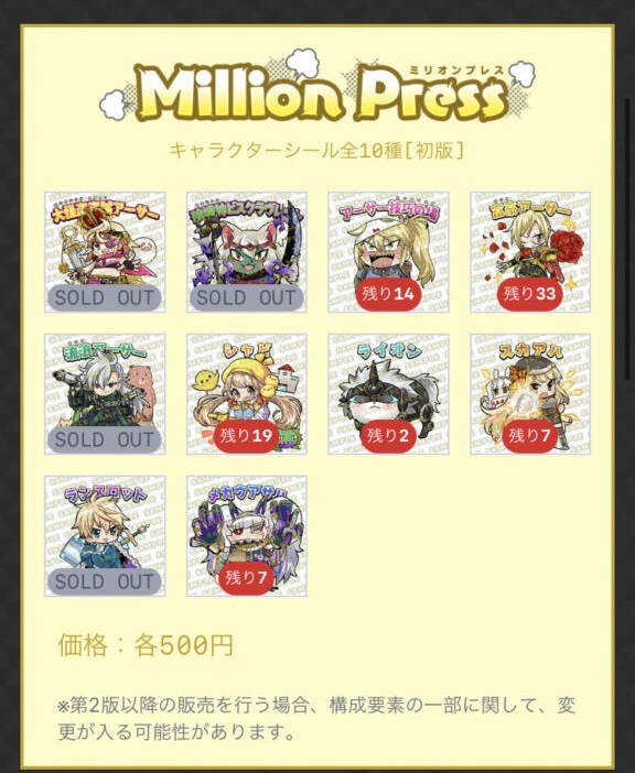 引用元:「資産性ミリオンアーサー」誕生!集めて、貼って楽しめるNFTデジタルシール (million-arthurs.com)
