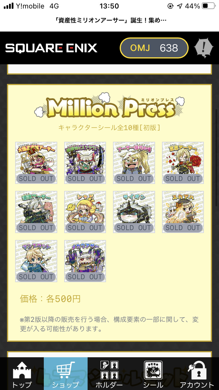 実はこの資産性ミリオンアーサーでは毎回一度売り切れと表示された後も複数回にわたって何枚か復活します!